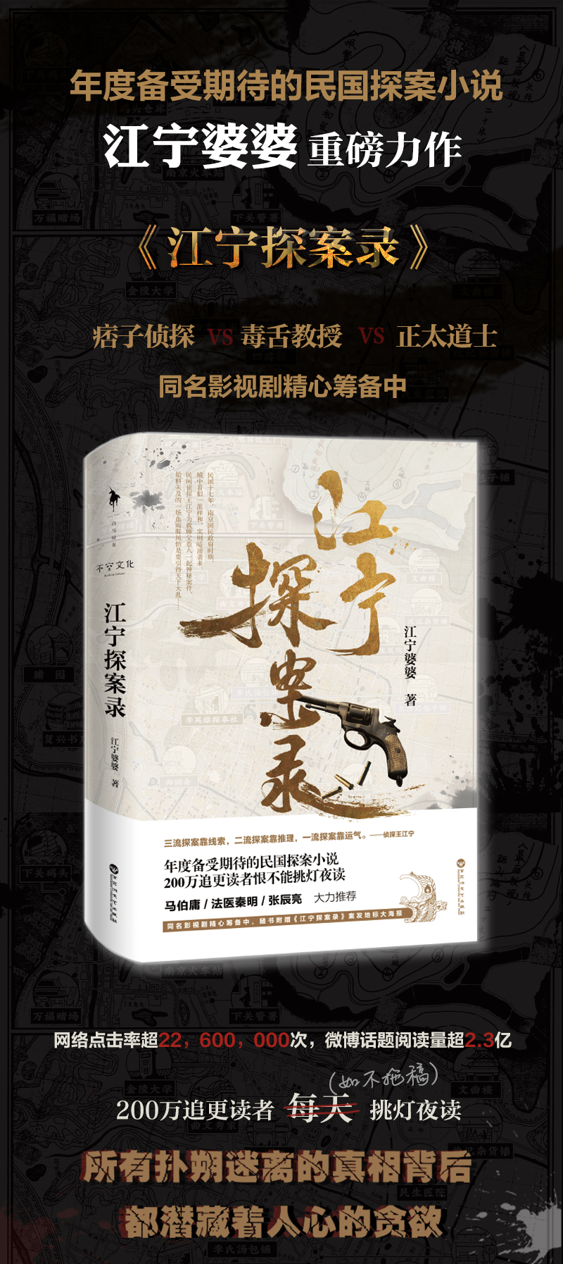 微博大V江宁婆婆倾情力作,带你去看一场传奇的民国探案之旅!实体书上市,火热预售中!